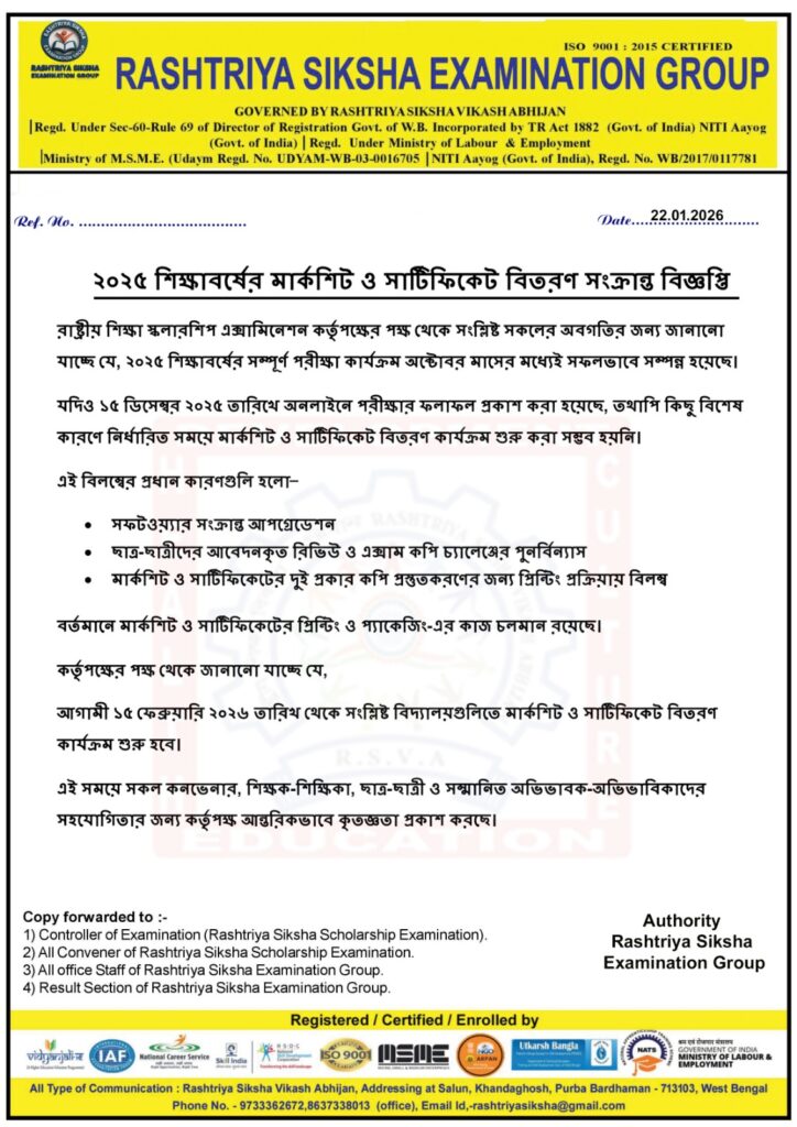 This notice informs all concerned that the rules and procedures for reviewing the answer scripts of candidates participating in the Rashtriya Siksha Scholarship Examination 2025 have been officially updated. Schools and candidates are instructed to follow the revised guidelines carefully. Any request for review must be submitted within the stipulated timeframe.